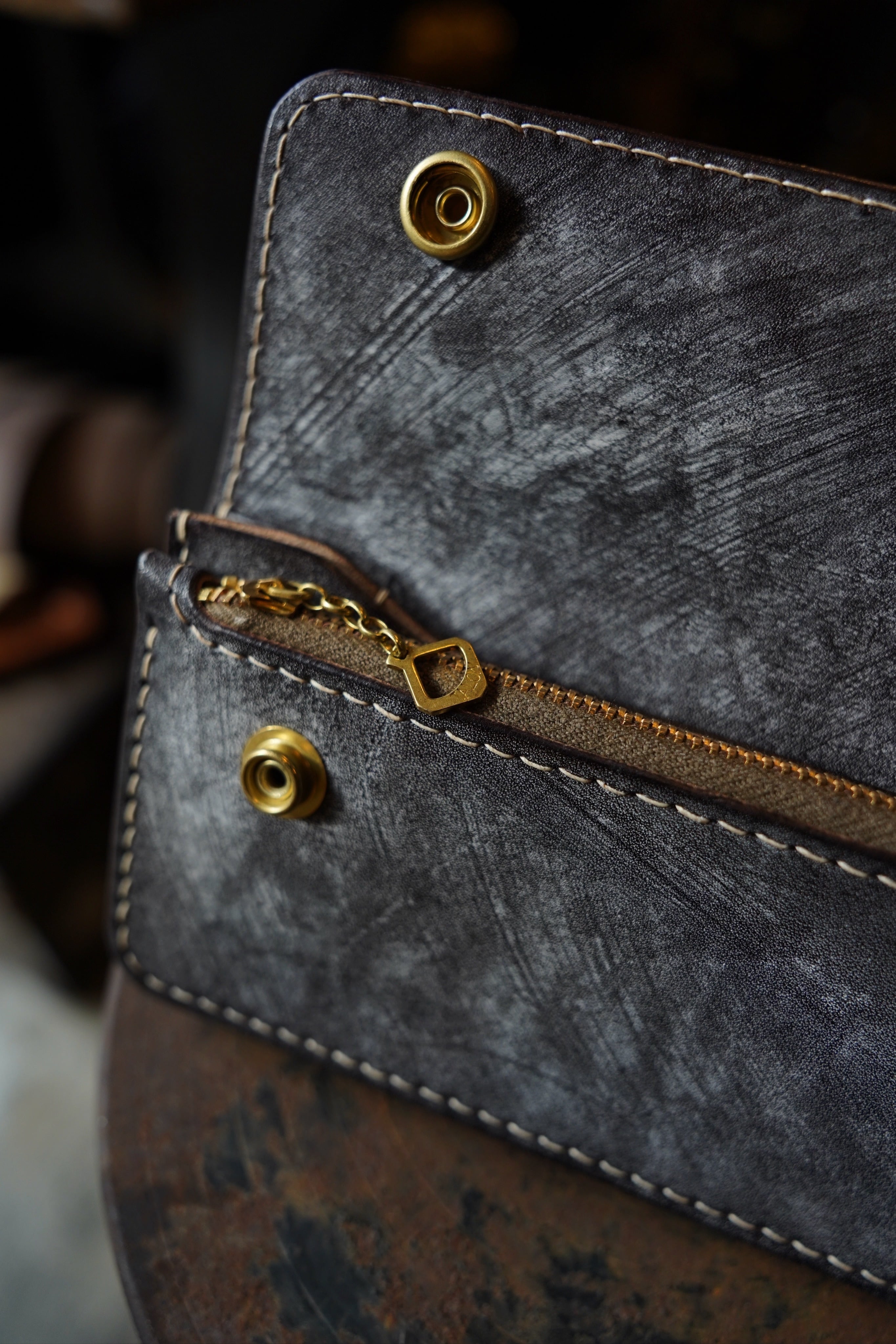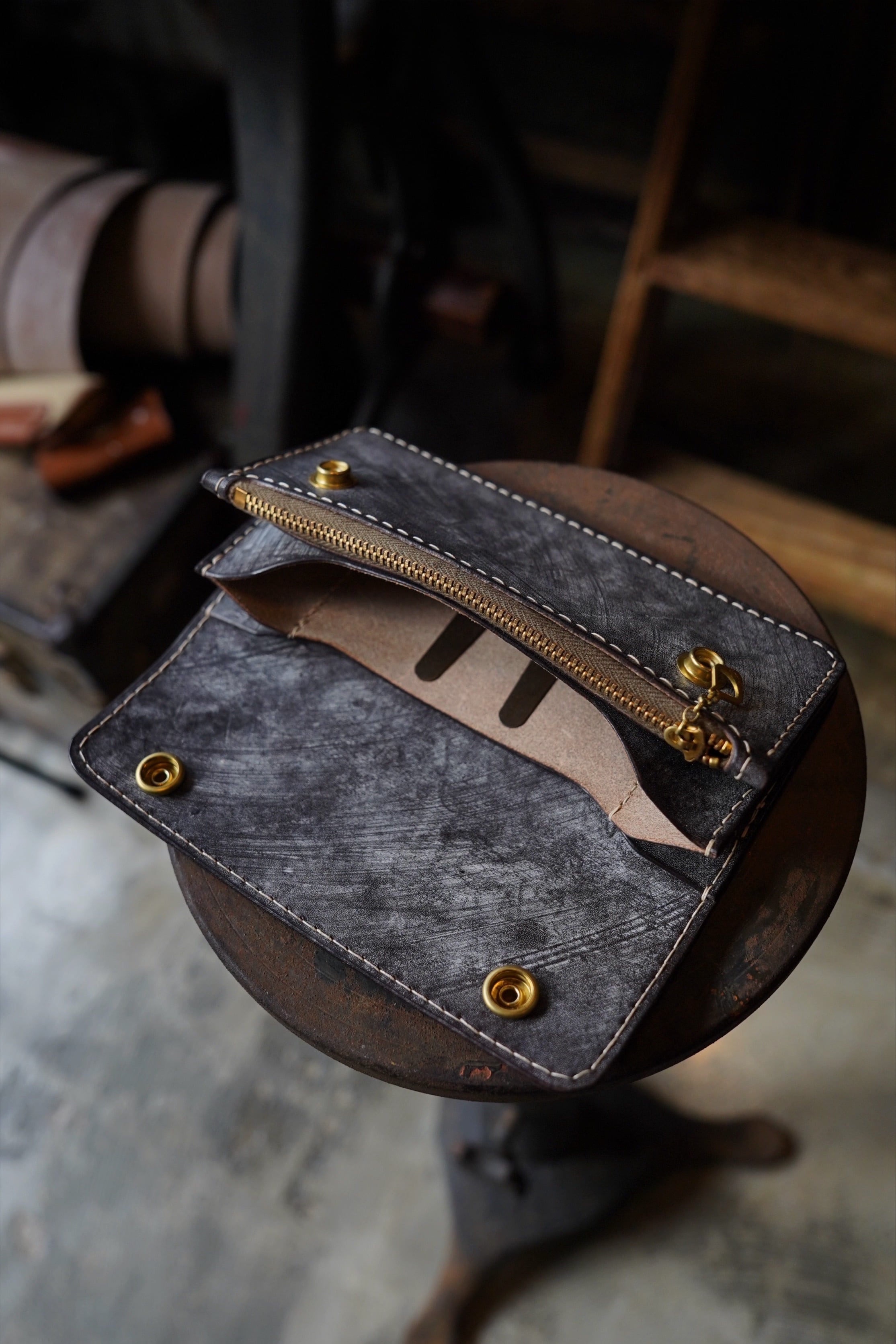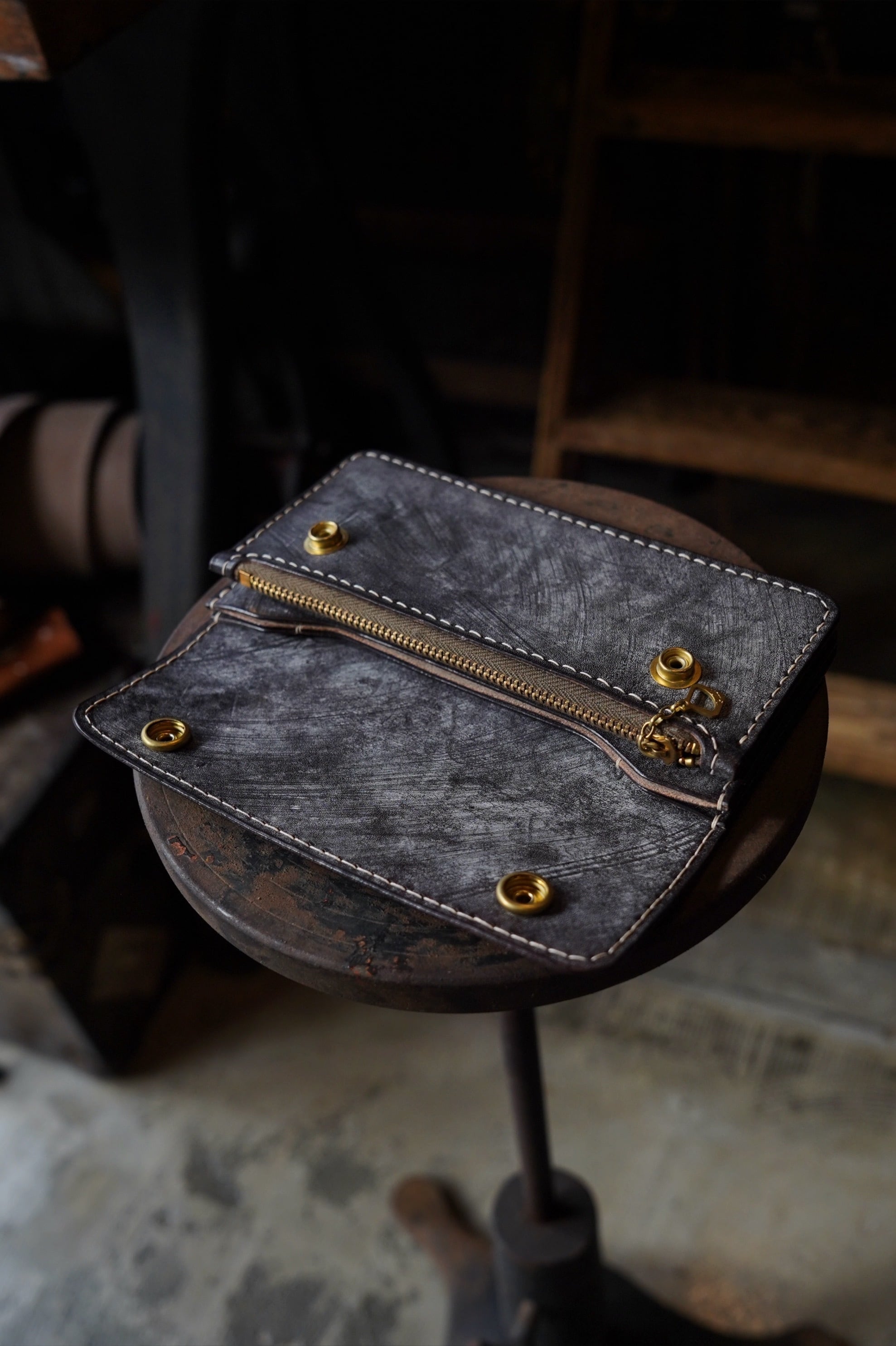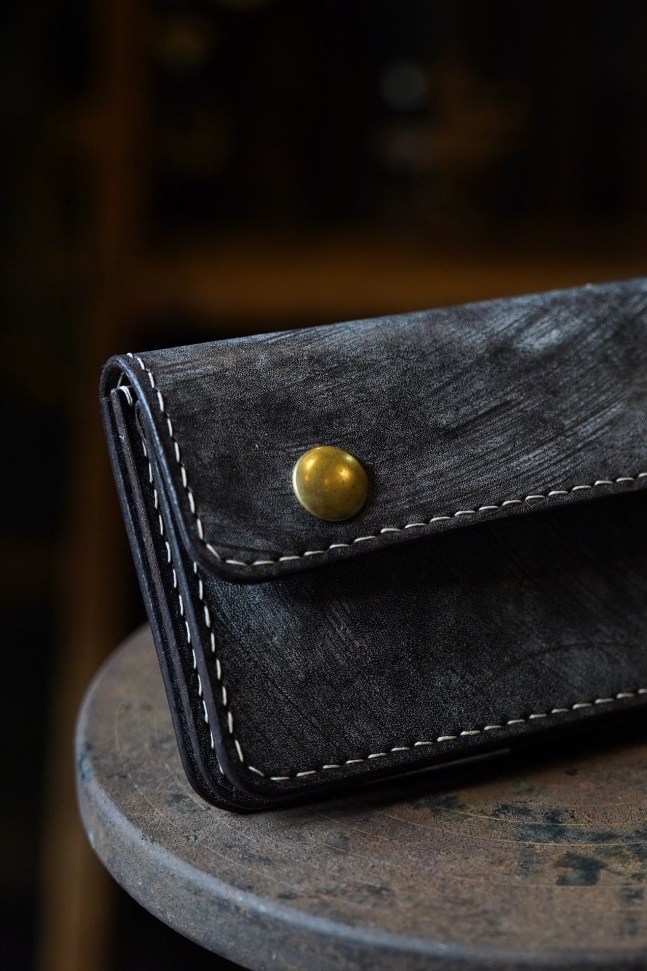 製作過程でつく細かいキズ、シミやヌメ革特有のシワ、トラ、ムラ、キズ等が有る場合がありますが、それも個性、味と捉えていただければと思います。