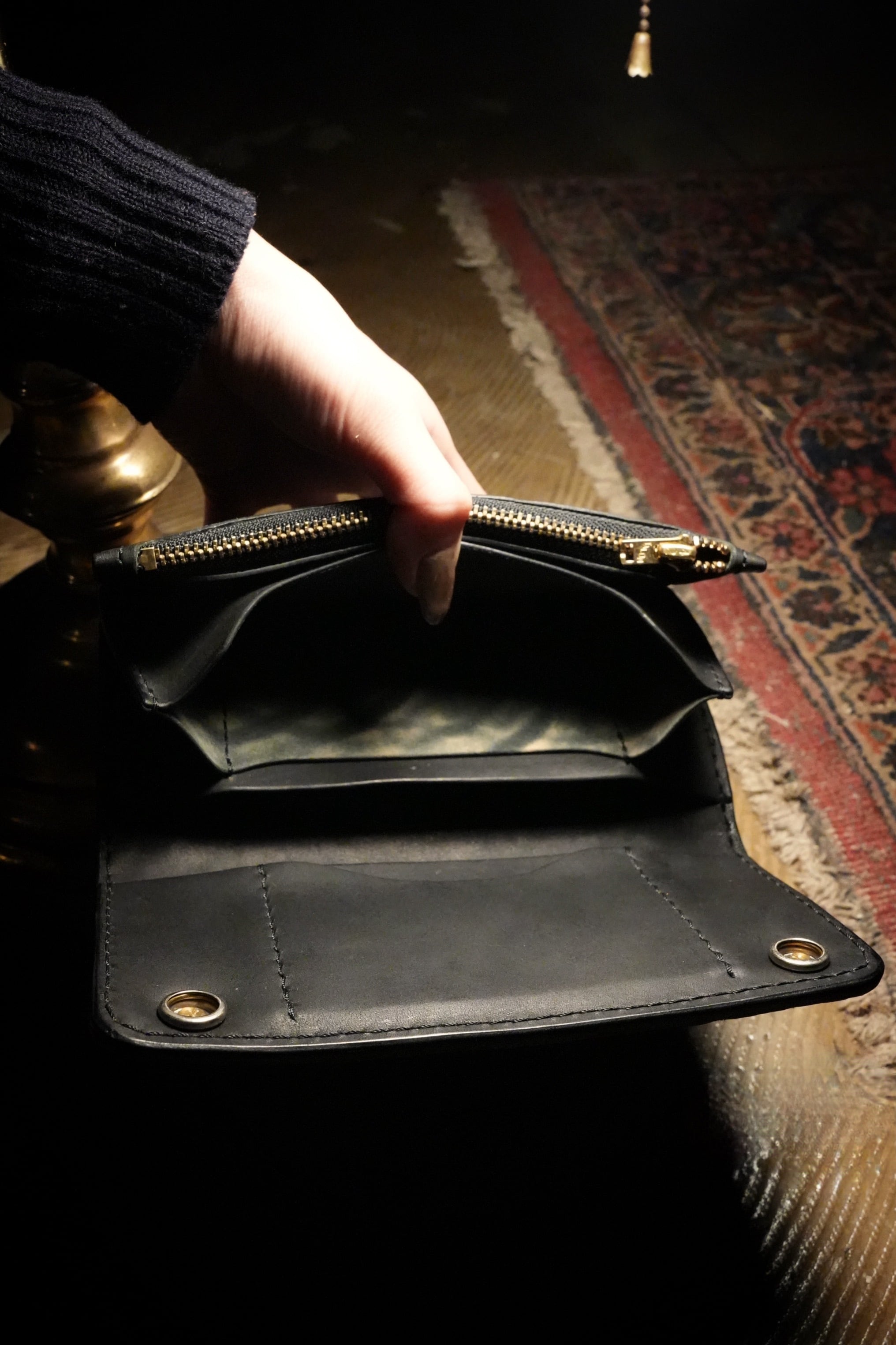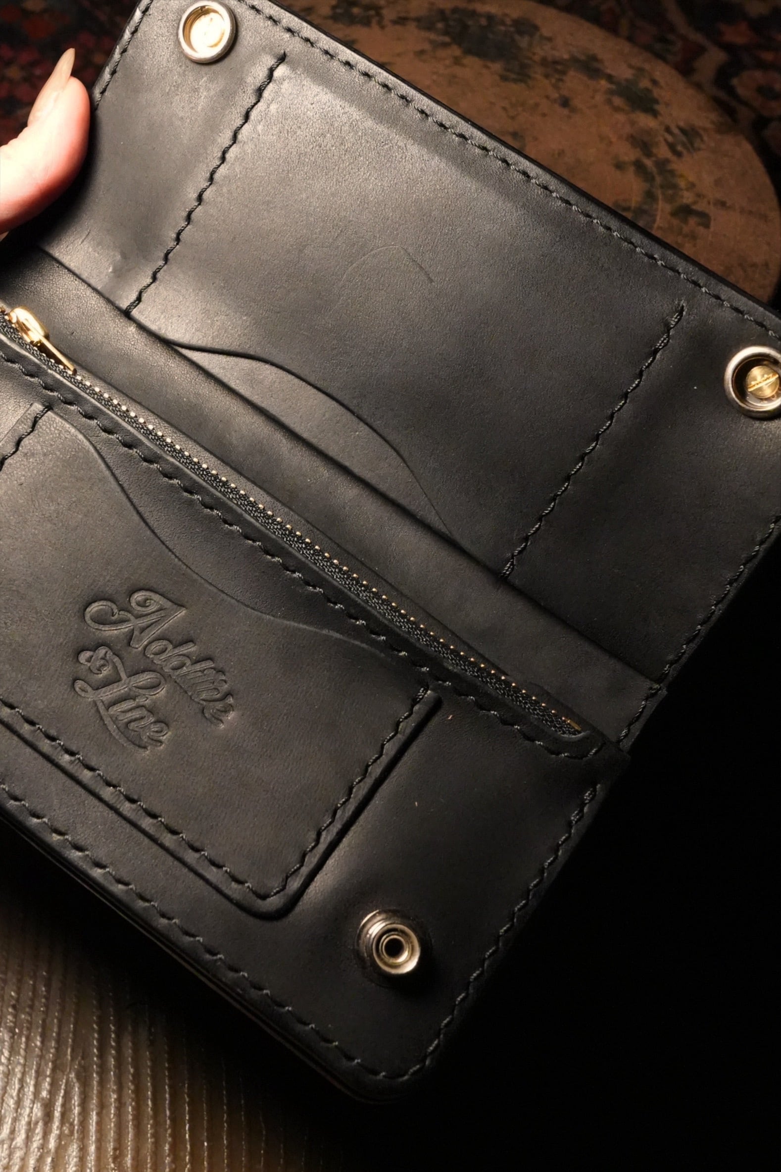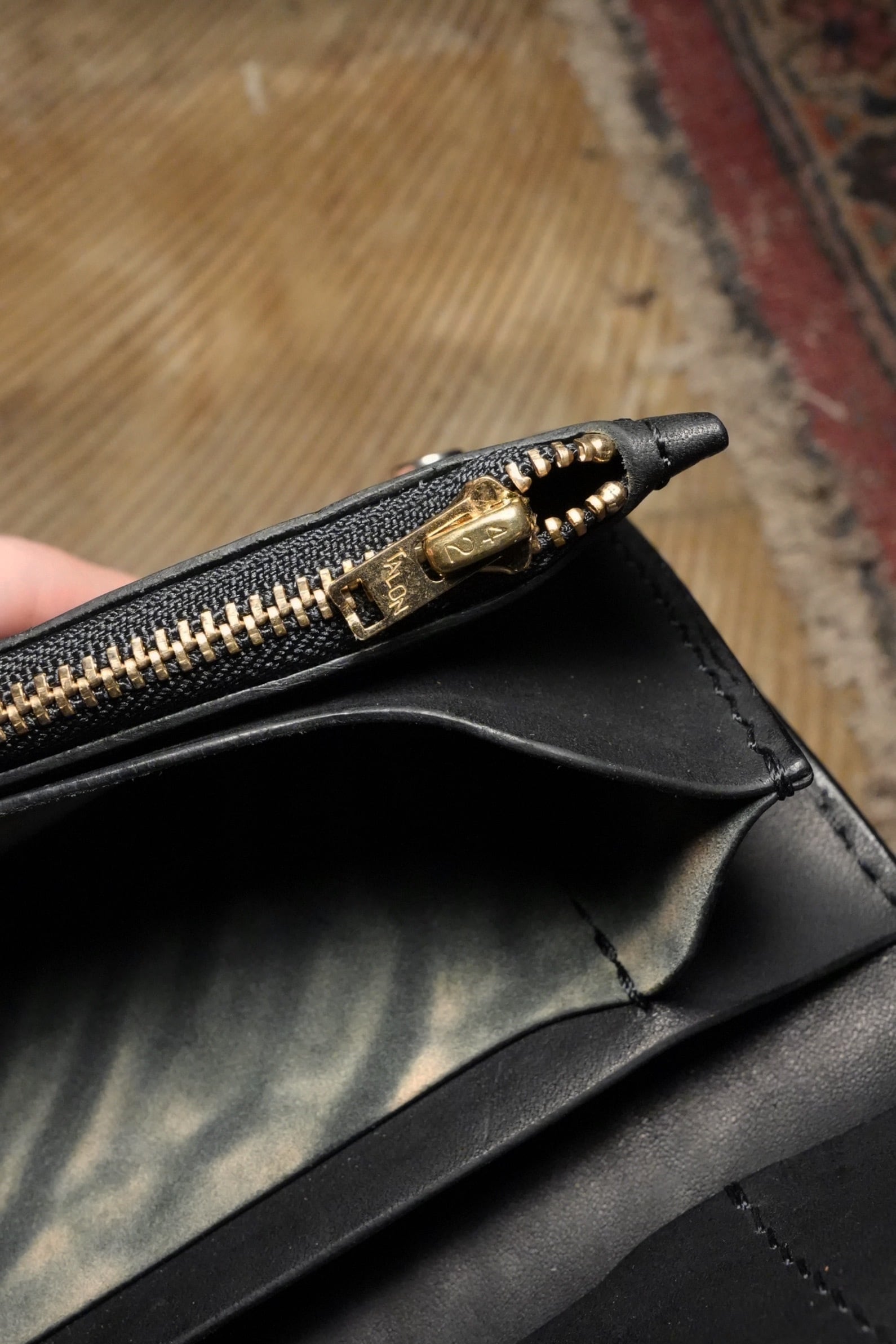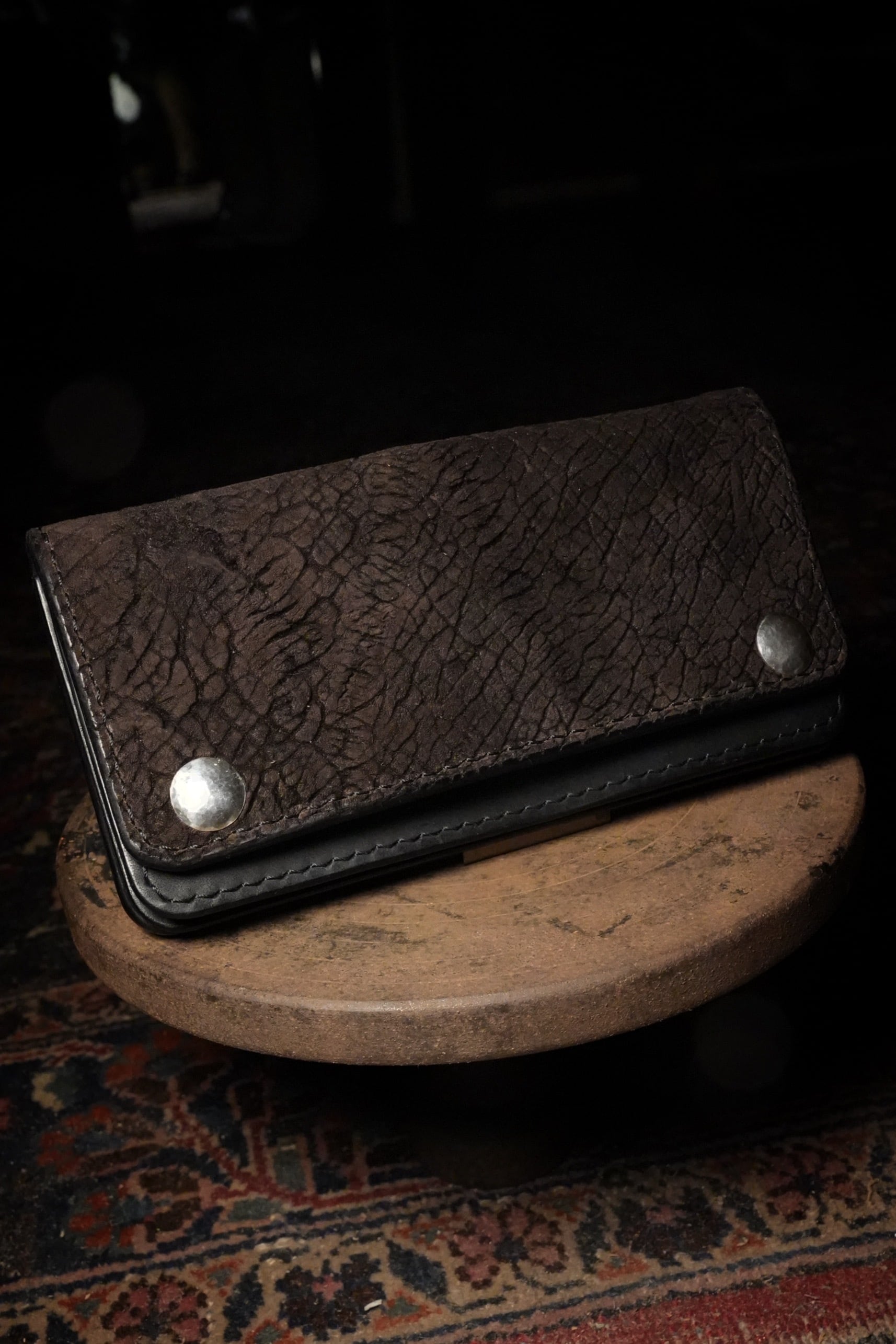 製作過程でつく細かいキズ、シミやヌメ革特有のシワ、トラ、ムラ、キズ等が有る場合がありますが、それも個性、味と捉えていただければと思います。